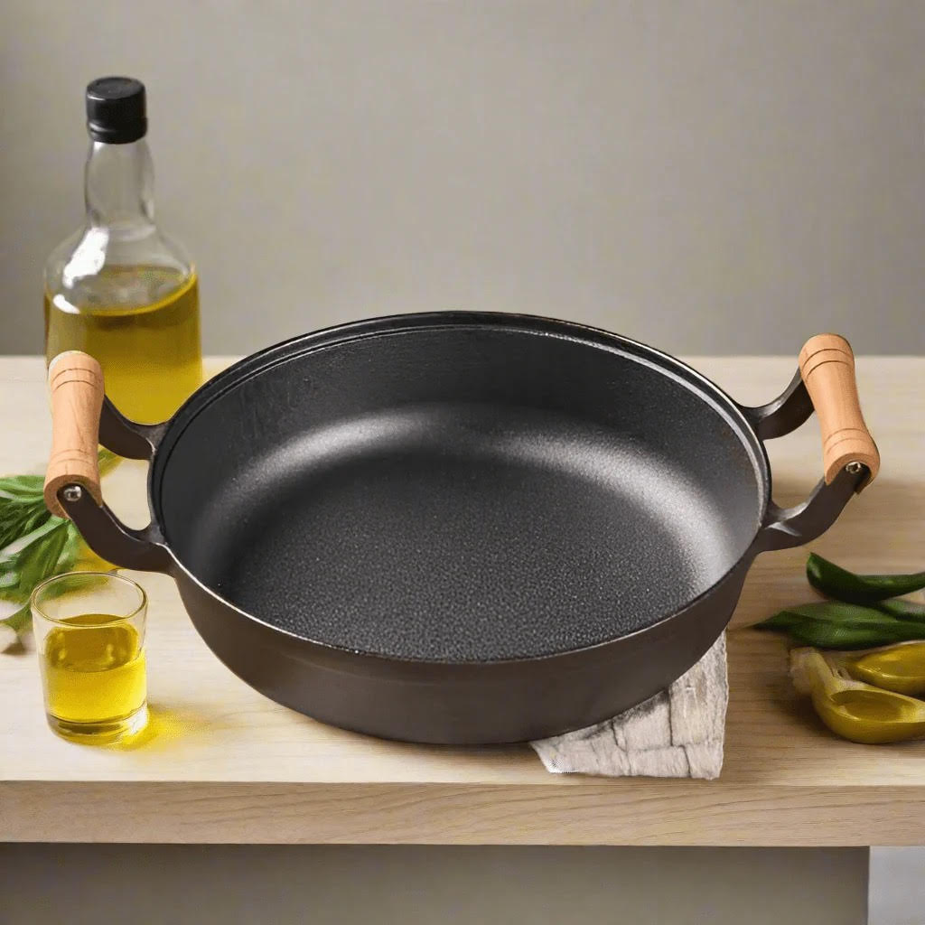 12” IronFlame Co Cast Iron Skillet – Heat-Ready with Wooden Handle, Backed by Lifetime Guarantee