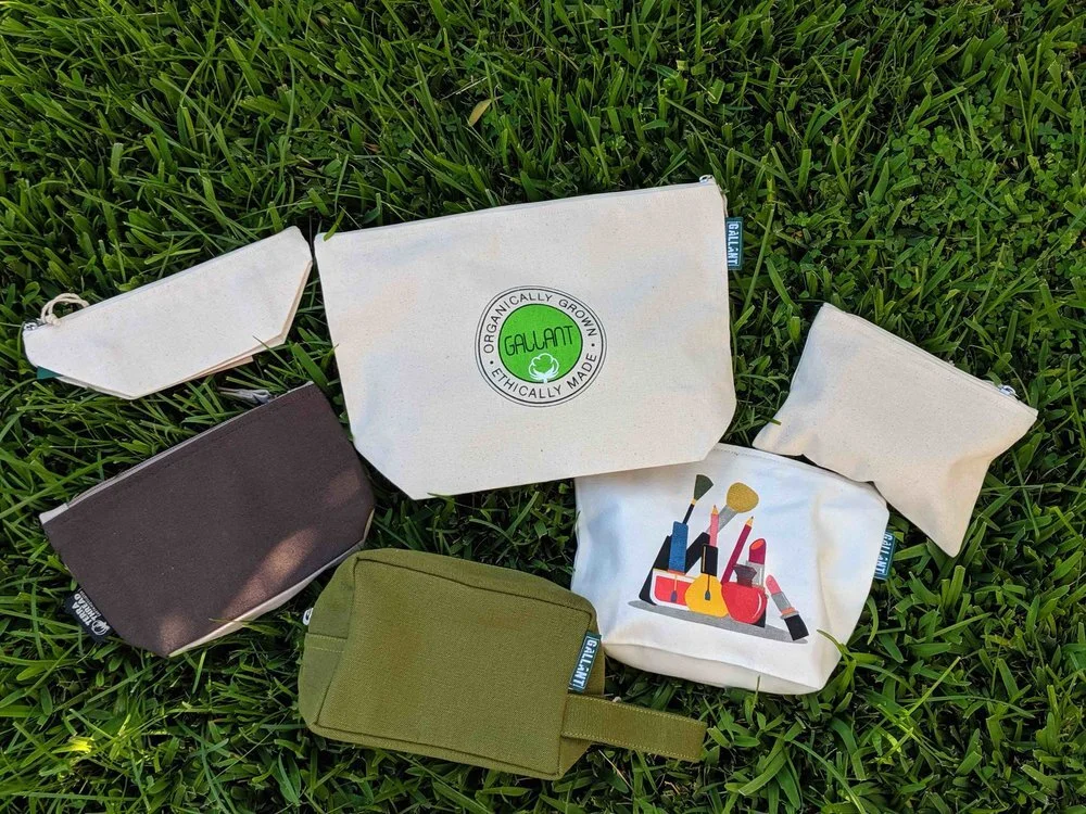 Gallant International makes 100% organic and fair trade wholesale cosmetic pouches for beauty brands. These cosmetic bags are made using organically grown fair trade cotton. Also, postharvest to finishing process is done as per GOTS standards.