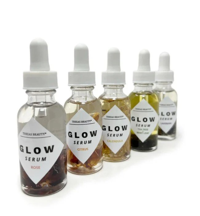 Achieve a radiant, youthful glow with GLOW Serum, a powerful formula designed to target dark spots and uneven skin tone. Packed with Calendula, Tea Tree, Mint Leaf, Rose, Lavender, and Citrus, this serum is rich in Vitamins, Omega 6-9, and antioxidants to visibly hydrate, nourish, and smooth your skin. Notice a glowing difference after just one use!