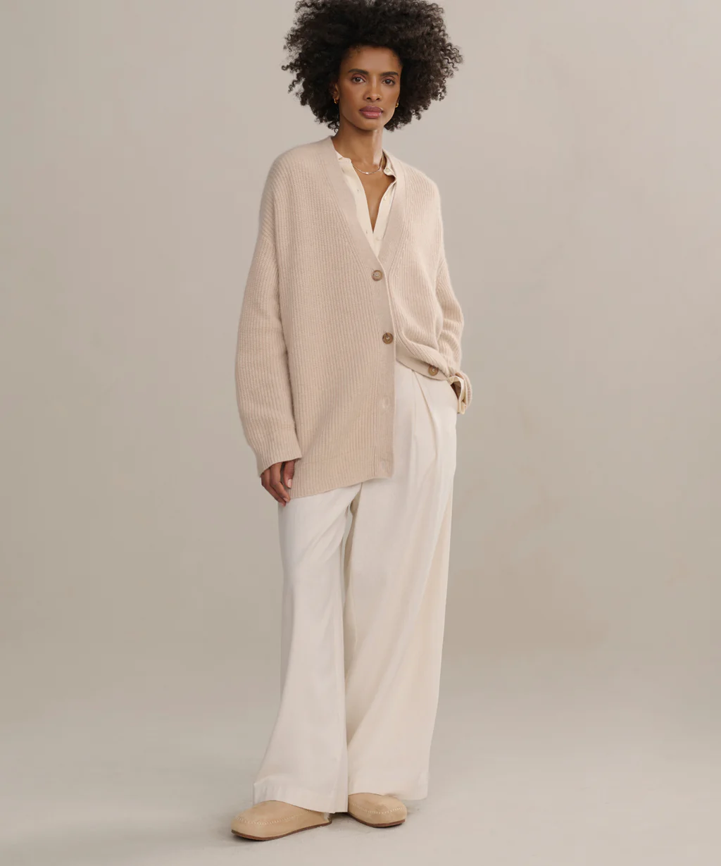 A cozy classic, the Cashmere Cocoon Cardigan from Jenni Kayne is an instant wardrobe upgrade that feels as good as it looks. Crafted from soft, luxurious cashmere, this sweater offers an oversized fit with a modern drape that flatters without effort. It's perfect for layering during cool spring mornings or while relaxing at home with a book and tea.