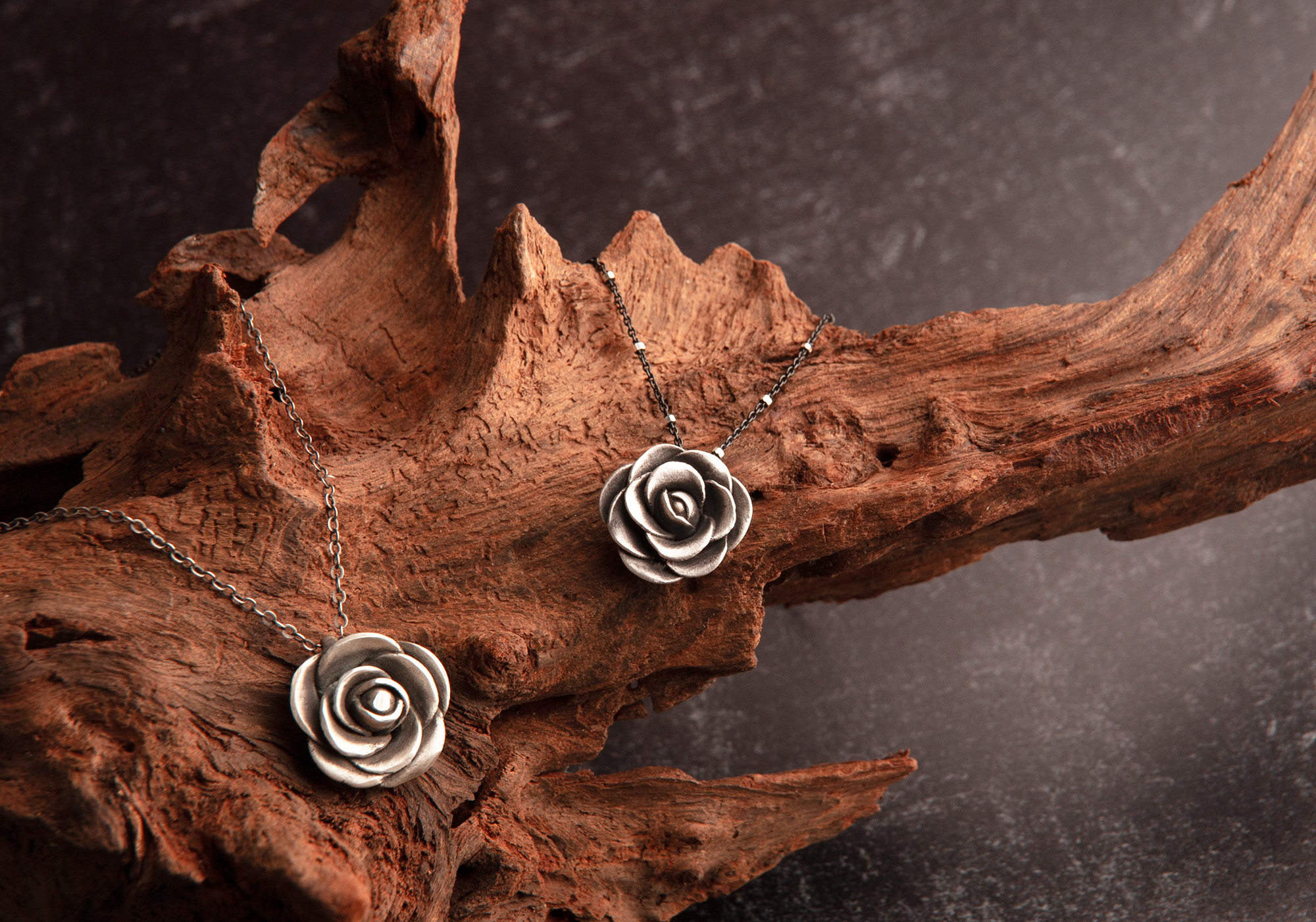 Jester Swink Artisan Silver Hand-Sculpted Rose Pendant Necklace