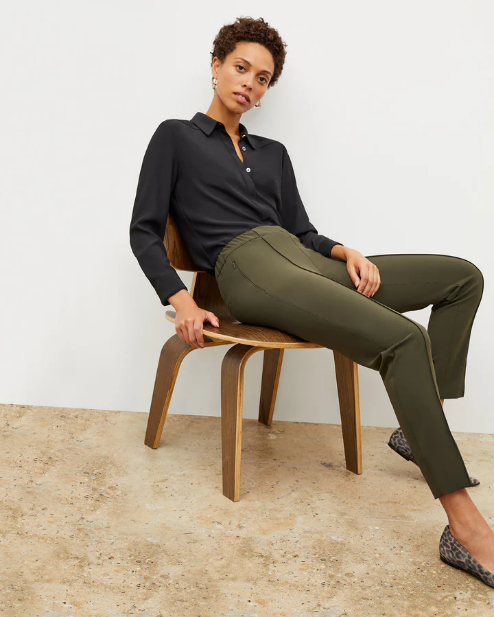 The tailored fit flatters various body types, and the shirt is available in multiple shades, including classic black and ivory. M.M.LaFleur's commitment to quality and functionality ensures this piece will be a cherished addition to any wardrobe. Shop: Mmlafleur.com