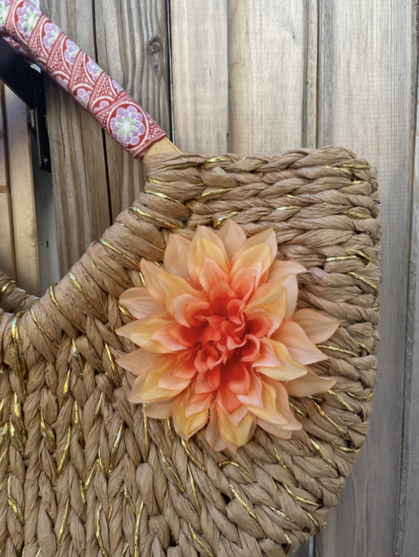 Hadley Pollet Handwoven Boho Tote with Dahlia Accent