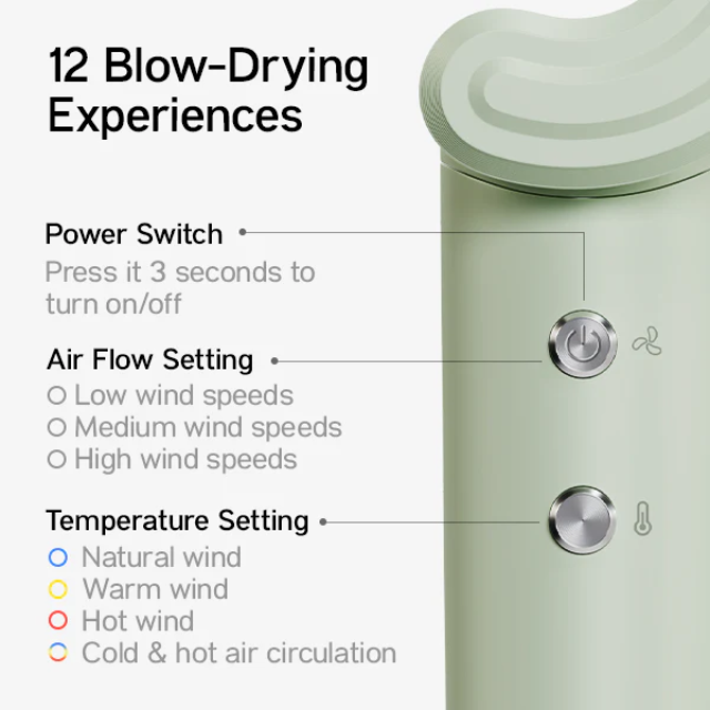 This performance is complemented by the dryer’s 12 blow-drying experiences, allowing you to customize the airflow and temperature settings to match your hair type and styling needs.